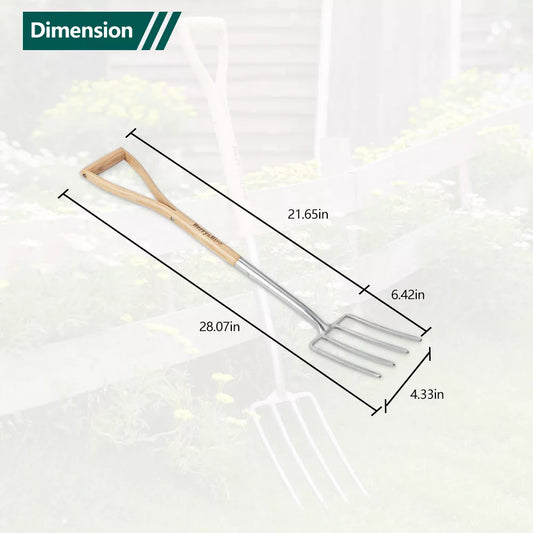 Garden Tools 4-Tine Kid Digging Fork 28.07 Inch with D-Handle Stainless Steel Spading Fork