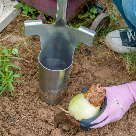 Garden Tools Long Handled Bulb Planter 36.62 inch Stainless Steel Bulb Transplanter Tool with T-Shape Long Wooden Handle