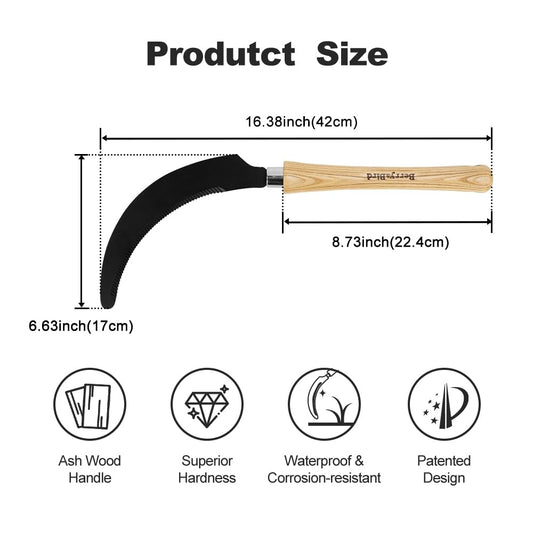 Garden Tools Grass Sickle with Sawtooth Hand Sickle with Heavy Duty SK5 Carbon Steel Blade