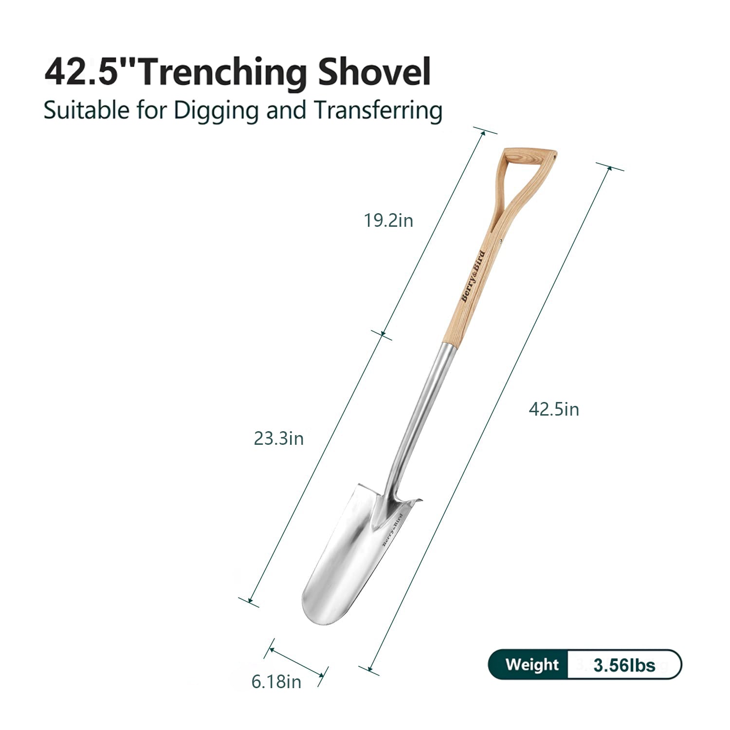 Garden Tools Planting Spade 42.5 inch Stainless Steel Trenching Shovel with D-Grip Handle